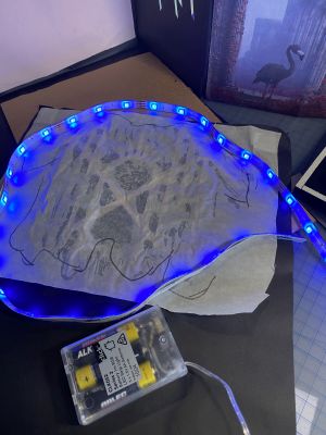 The other thing that I found waaaay too funny was the fact that I only have glitter glue sticks left for my glue gun and they’re the same colours as the light strip! Of course do you think I could find my bloody glue gun? no. Did I tear apart the studio looking for it? yes. I have this horrible feeling that it’s in storage as I’m moving house soon so I’m going to have to borrow one from work tomorrow so now I’m at a stalemate and can’t do anything else dangit!